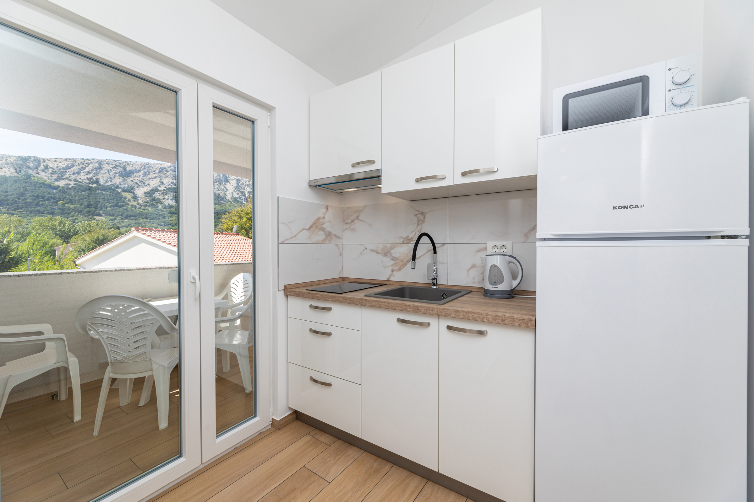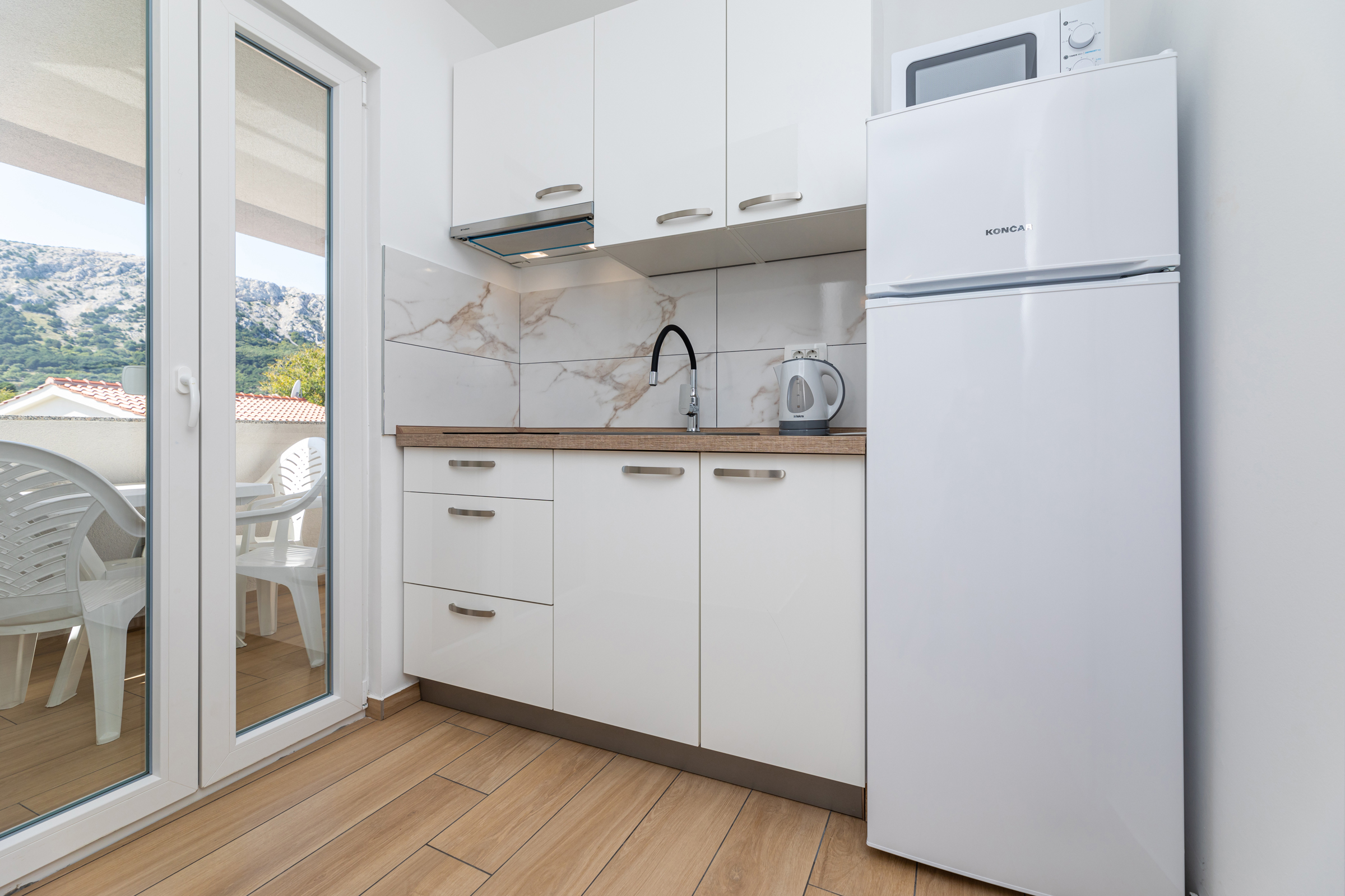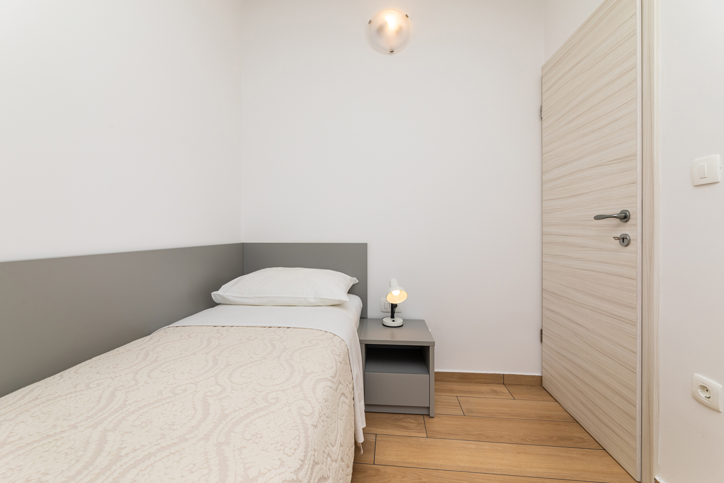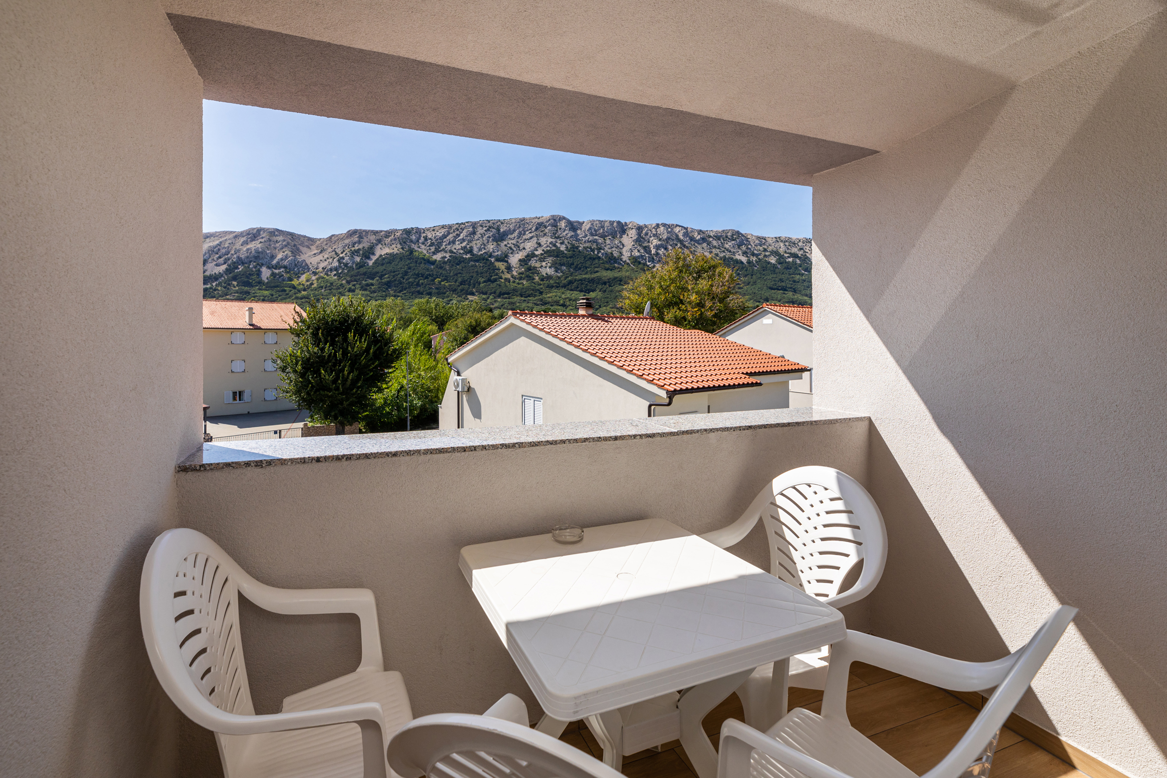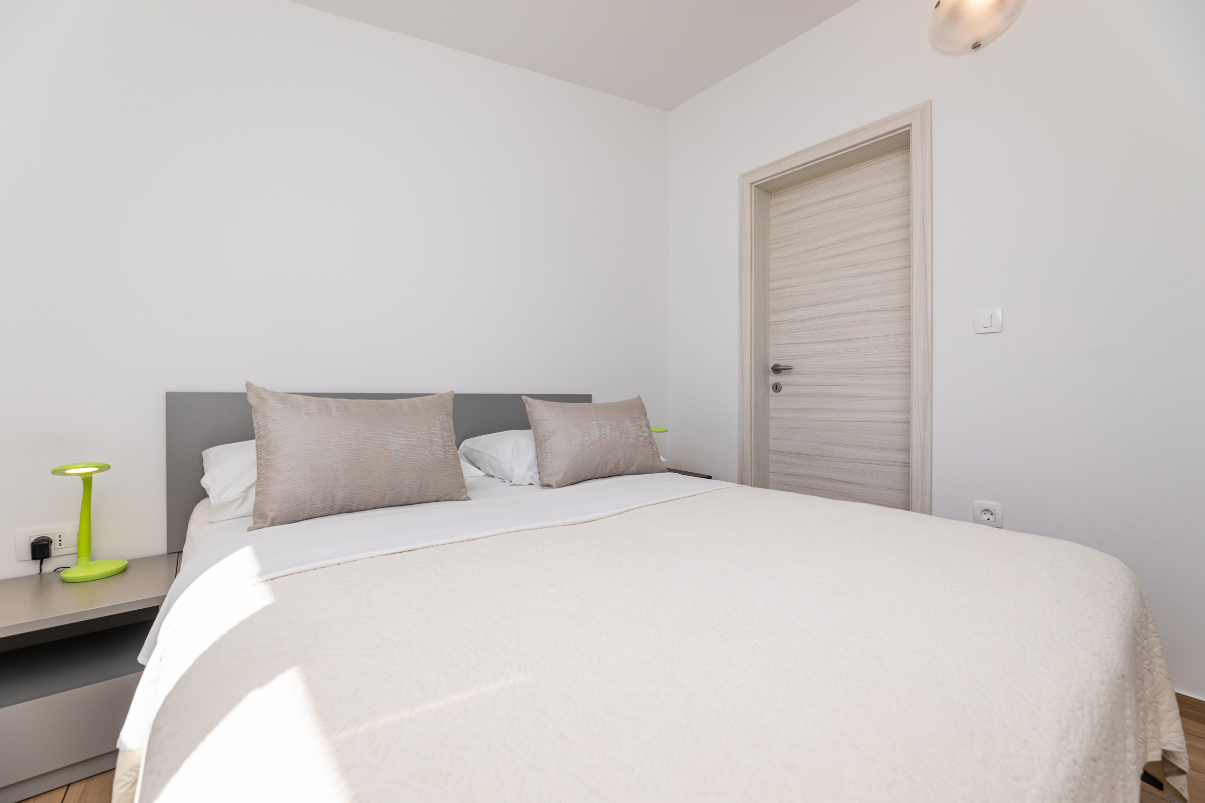 Das Haus verfügt über 8 Apartments und 3 Studios, jeweils mit eigenem Parkplatz. 2 Apartments haben 2 Schlafzimmer und Platz für 4 Erwachsene oder eine Familie mit 2-3 Kindern. 6 Apartments haben 1 Schlafzimmer und Platz für zwei Erwachsene und 1 Kind. 3 Studios sind für maximal 2 Personen geeignet. Die Studios Nr. 5 und 6 haben keinen Balkon, Studio 10 hat eigene Balkon. Alle Apartments verfügen über eine Terrasse oder einen Balkon sowie einen Tisch und Stühle.
