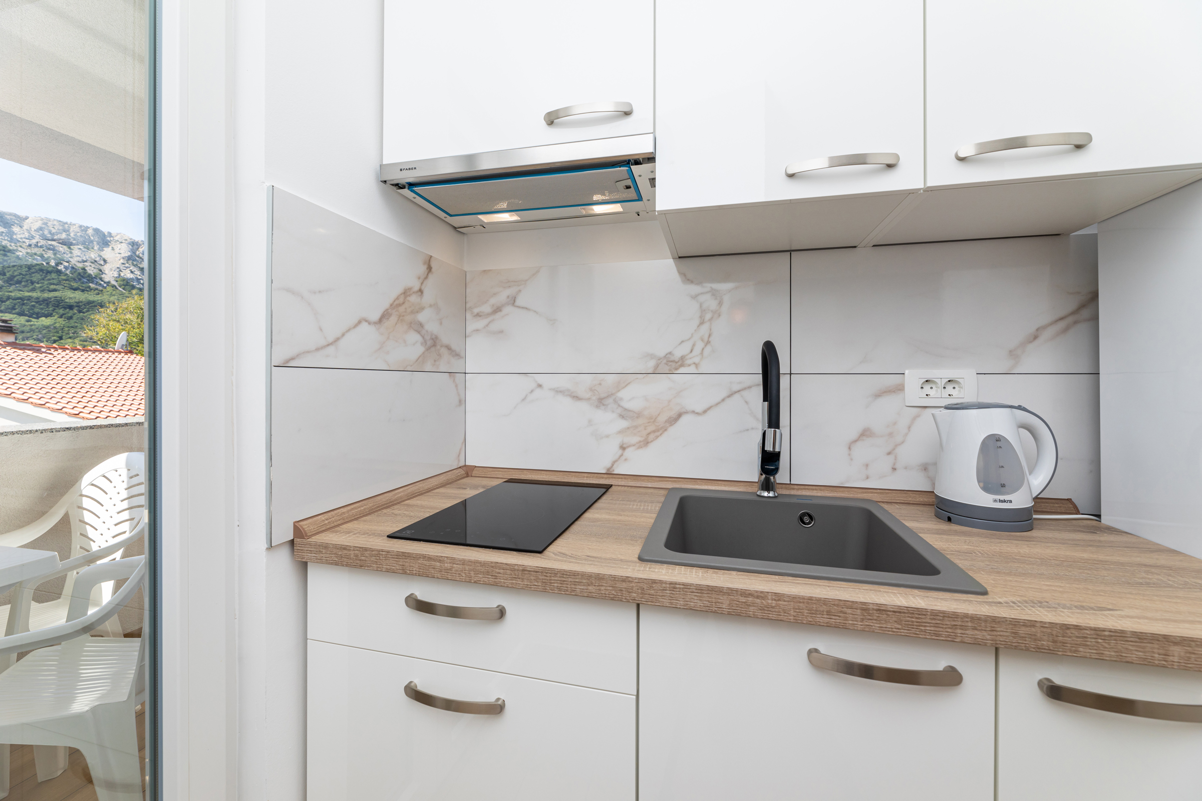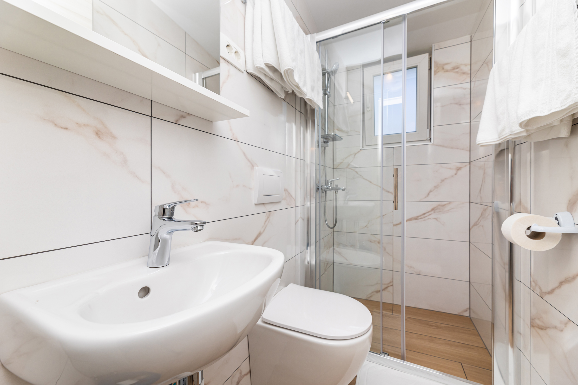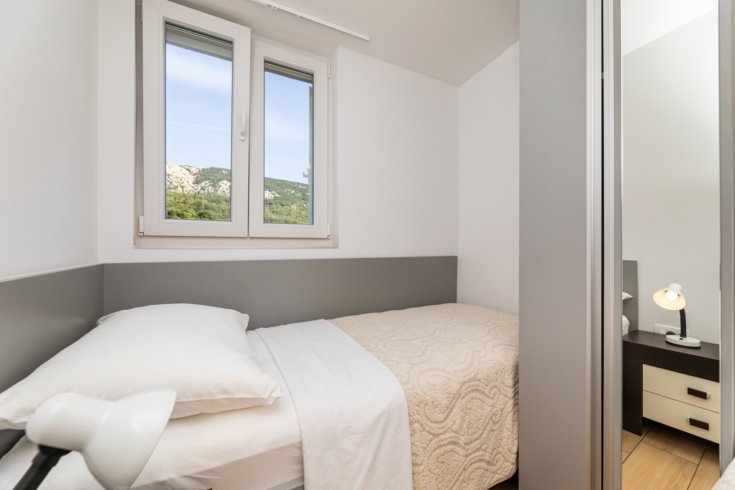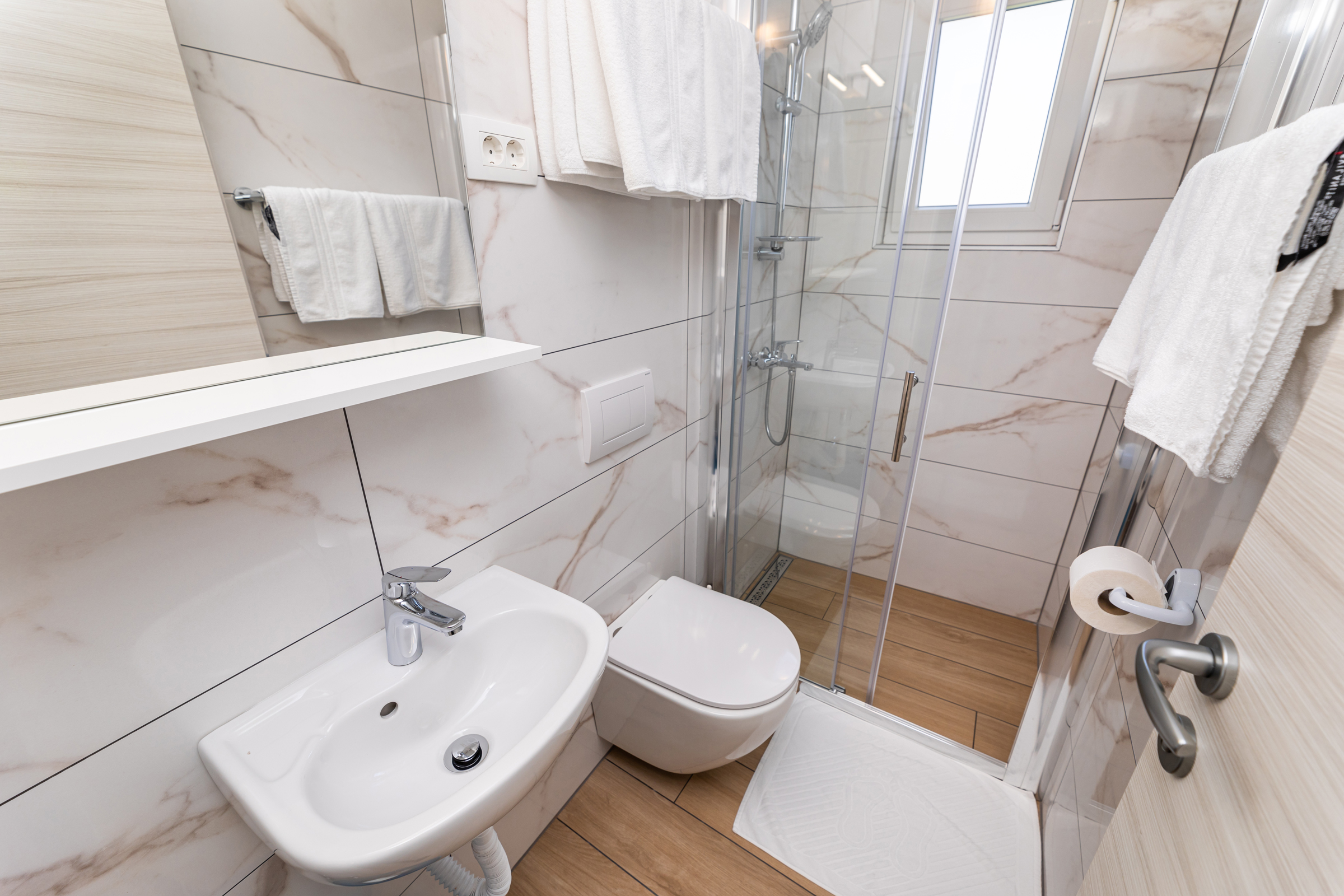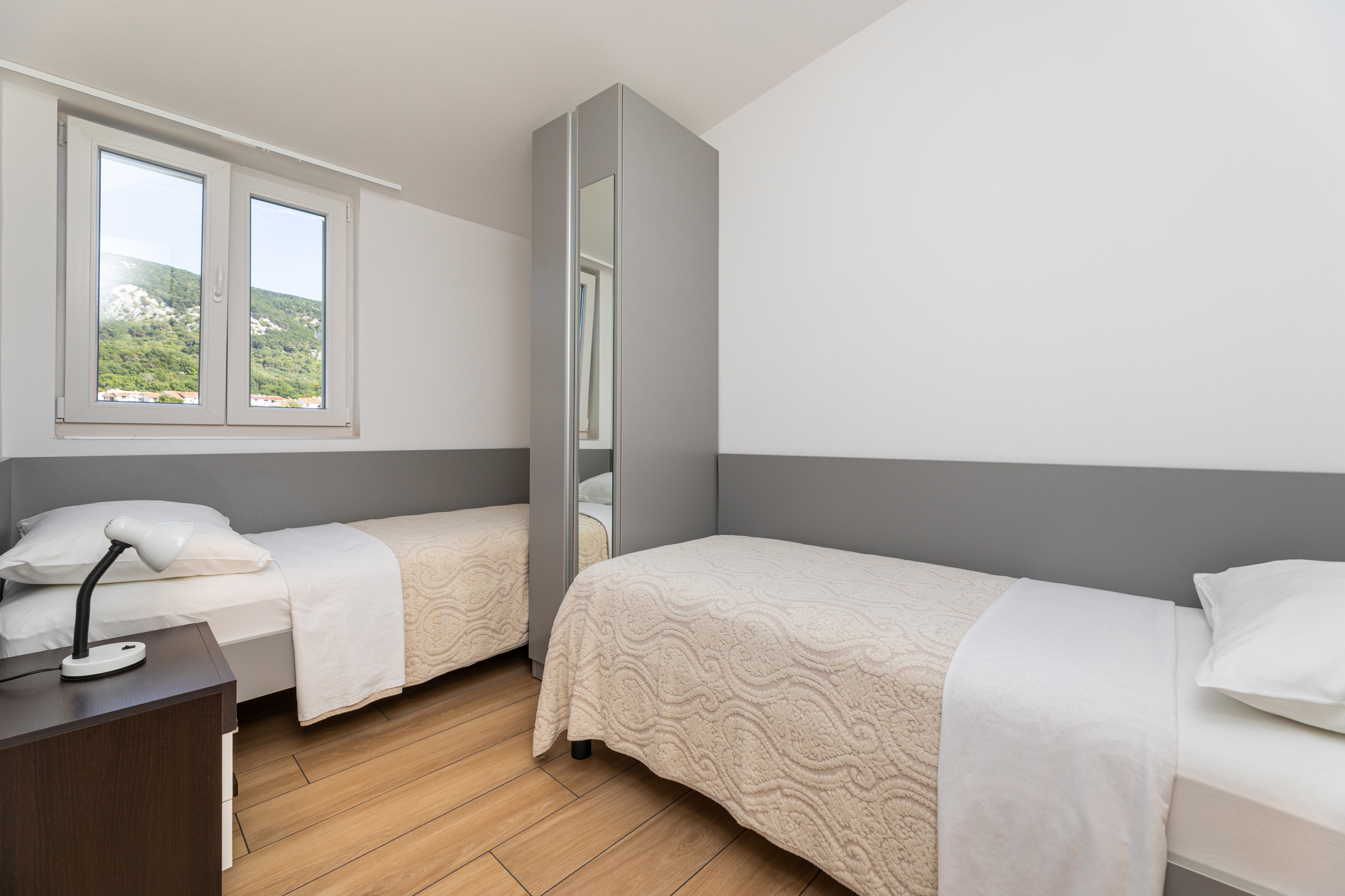 Das Haus verfügt über 8 Apartments und 3 Studios, jeweils mit eigenem Parkplatz. 2 Apartments haben 2 Schlafzimmer und Platz für 4 Erwachsene oder eine Familie mit 2-3 Kindern. 6 Apartments haben 1 Schlafzimmer und Platz für zwei Erwachsene und 1 Kind. 3 Studios sind für maximal 2 Personen geeignet. Die Studios Nr. 5 und 6 haben keinen Balkon, Studio 10 hat eigene Balkon. Alle Apartments verfügen über eine Terrasse oder einen Balkon sowie einen Tisch und Stühle.