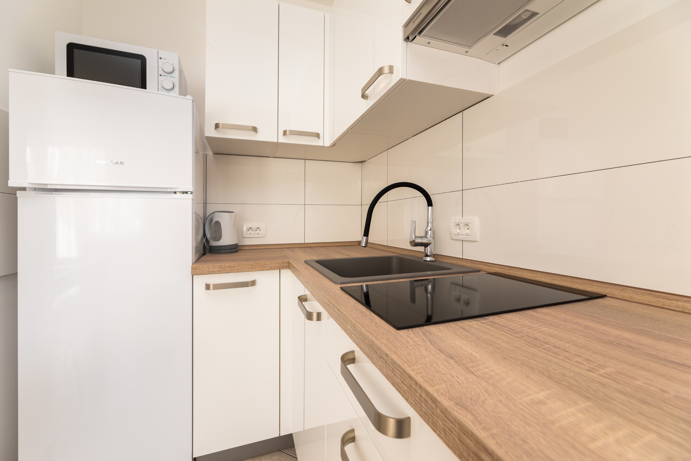 Alle Apartments sind ausgestattet mit: SAT-TV, WIFI, Klimaanlage, Safe. Küche mit Kühl- und Gefrierschrank, Geschirr und Besteck, Wasserkocher, Kaffeemaschine, Induktionsherd oder Glaskeramikkochfeld mit zwei Kochstellen, Mikrowelle. Bad/WC mit Dusche und Haartrockner.